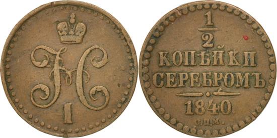 | | Coin, Russia, Nicholas I, Denga, 1/2 Kopek, 1840, Saint-Petersburg, | | | Crowned monogram, Value, date | | FEATURES |