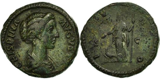 | | Coin, Crispina, As, Rome, , Bronze, RIC:679 | | | Crispina, As, Rome, AD 178-182, , Bronze, RIC:679, draped bust right, Juno standing left, holding patera and sceptre; peacock at her feet, CRISPINA AVGVSTA, IVNO | | FEATURES |