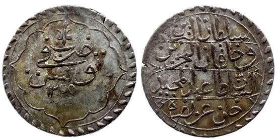 OTTOMAN TUNISIA AR 4 KHARUB of ABDULMAJID AH 1255 TUNUS 11.5 GR & 31,91 MM