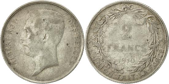 | | Coin, Belgium, 2 Francs, 2 Frank, 1910, , Silver, KM:74 | | | Head of Albert, left, legend in French, Denomination above date within wreath, DES BELGES | | FEATURES |