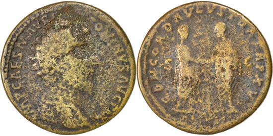 | | Coin, Marcus Aurelius, Sestertius, 162, Rome, , Copper, Cohen:54 | | | IMP CAES M AVREL ANTONINVS AVG P M, CONCORD AVGVSTOR TRP XVI // COS III // SC | | FEATURES |