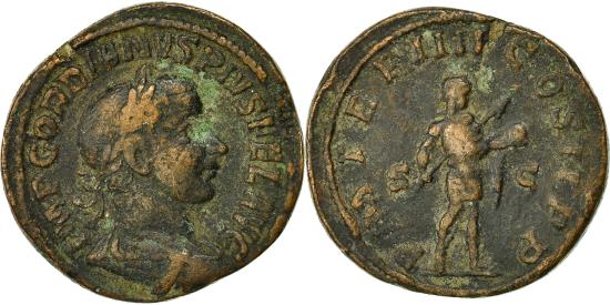 | | Coin, Gordian III, Sestertius, 241, Rome, , Copper, RIC:306a | | | IMP GORDIANVS PIVS FEL AVG, P M TR P IIII COS II P P / S C | | FEATURES |