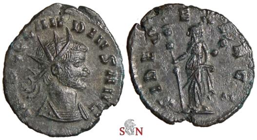 CLAVDIVS AVG, radiate and cuirassed bust right. Rev. FIDES EXERCI, Fides