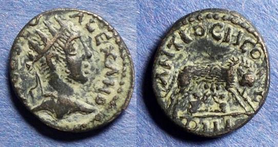 She-wolf suckling Romulus and Remus. "ANTIOCH COLONI"