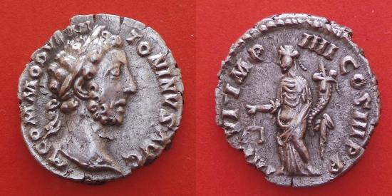 Obv: M COMMODVS ANTONINVS AVG, Laureate head right