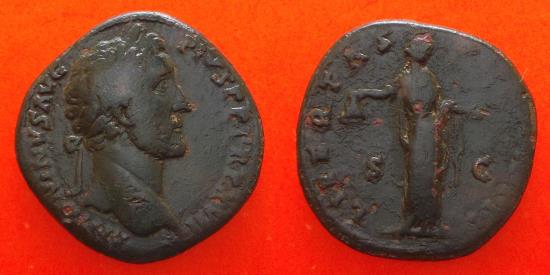 Obv: ANTONINVS AVG PIVS PP TR P XVIII, Laureate head right