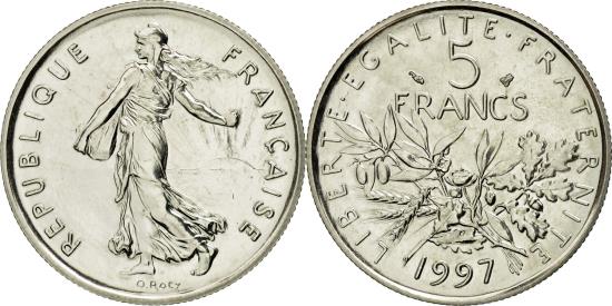 Coin, France, Semeuse, 5 Francs, 1997, Paris, , Nickel CladCoin, France, Semeuse, 5 Francs, 1997, Paris, , Nickel Clad
