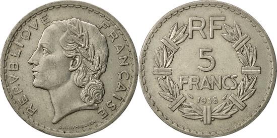 Coin, France, Lavrillier, 5 Francs, 1938, Paris, , Nickel, KM:888Coin, France, Lavrillier, 5 Francs, 1938, Paris, , Nickel, KM:888