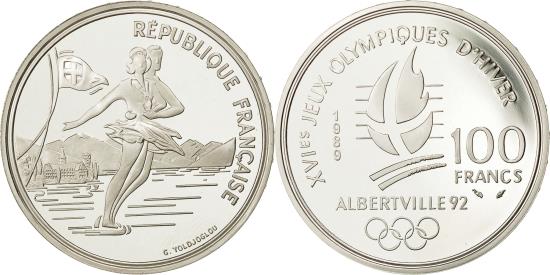 | | Coin, France, 100 Francs, 1989, , Silver, KM:972, Gadoury:C3 | | | Ice Skating Couple, Cross on flame, date and denomination, logo below | | FEATURES |