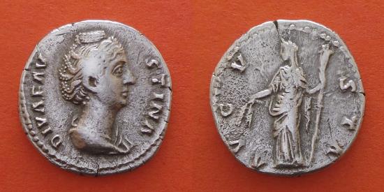 Rev.: AVGVSTA Ceres, veiled, standing left, holding torch and grain ears.