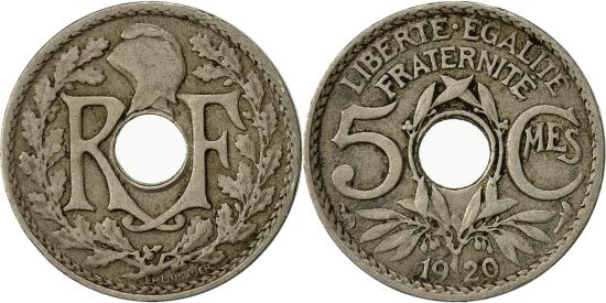 | | Coin, France, Lindauer, 5 Centimes, 1920, Paris, , Copper-nickel | | | Lindauer, Monogram divided by center hole, liberty cap above, wreath surrounds, Denomination divided by plant and center hole, date below | | FEATURES |