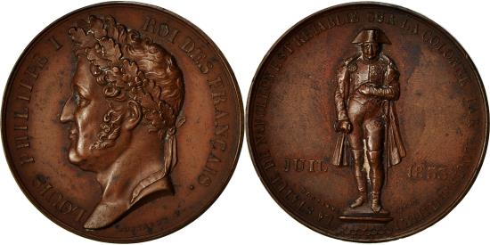 | France, Medal, Louis Philippe Ier, Rétablissement de la Statue de Napoléon |