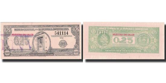 | | Banknote, Dominican Republic, 25 Centavos Oro, Undated (1961), Specimen, KM:88s | | | Specimen., Entrance to the Banco Central in oval frame at center., Black., Green. | | FEATURES |