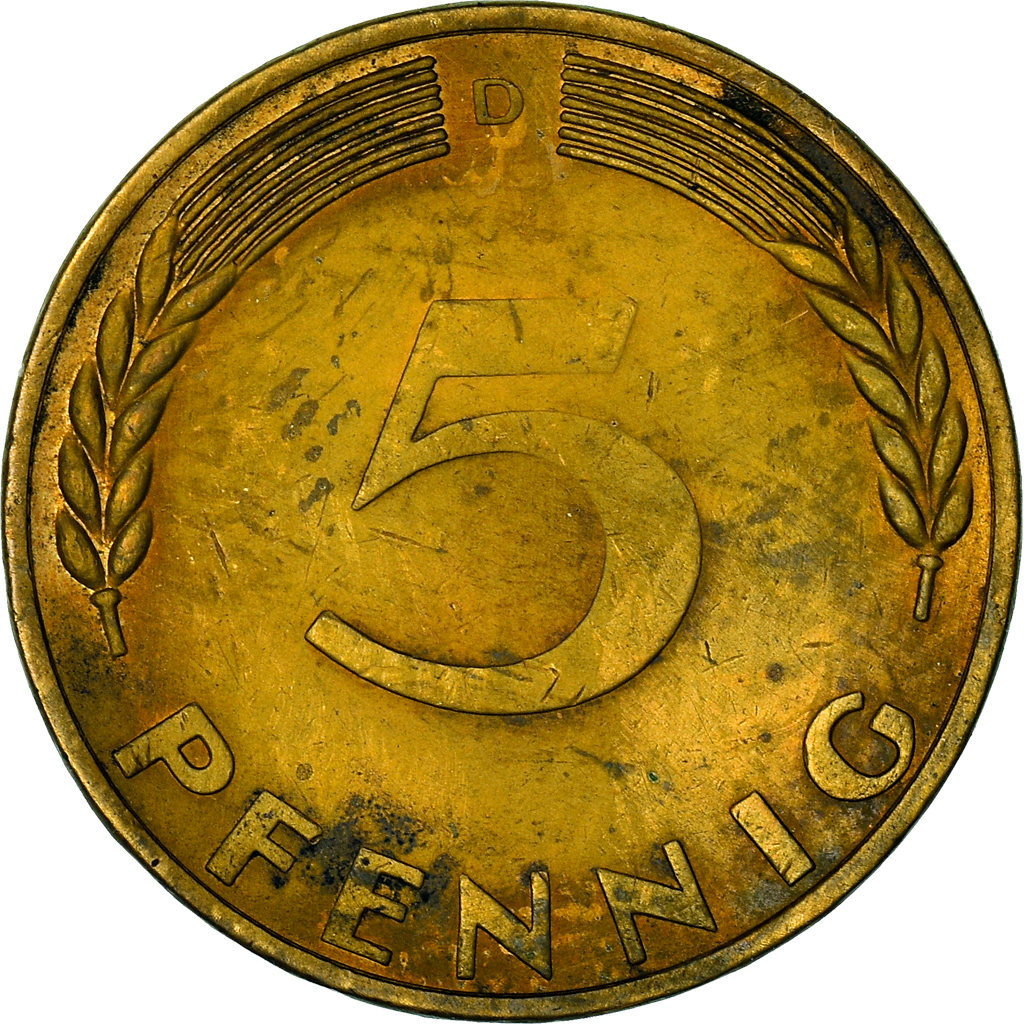 | #[365765] COIN, GERMANY - FEDERAL REPUBLIC, 5 PFENNIG, 1970, MUNICH, , BRASS CLAD |