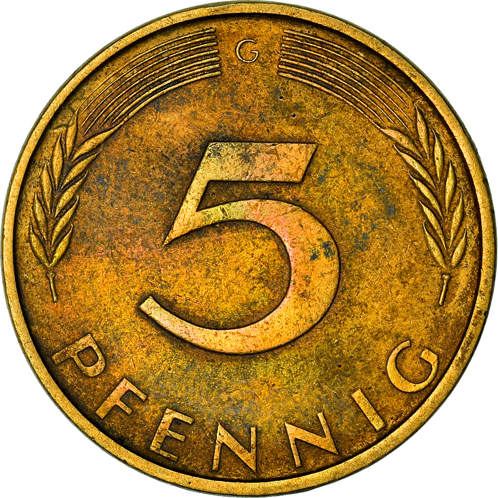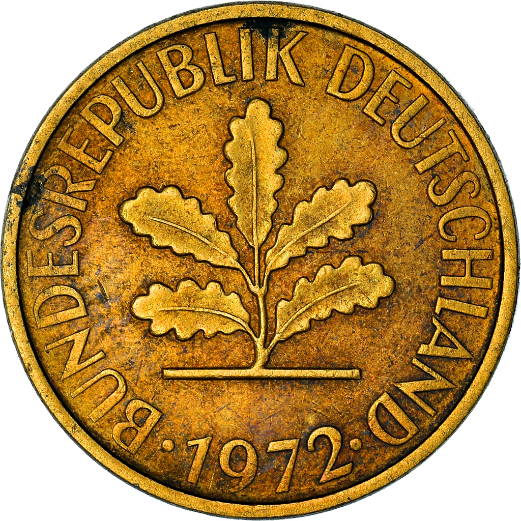 | #[365763] COIN, GERMANY - FEDERAL REPUBLIC, 5 PFENNIG, 1972, KARLSRUHE, , BRASS |