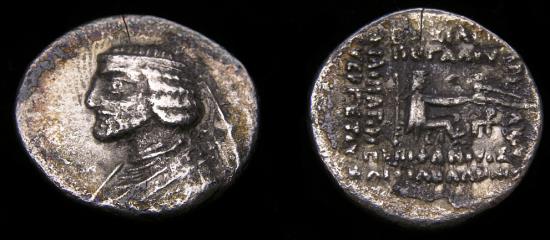 Rev: Archer (Arsakes I) seated right on throne, holding bow.