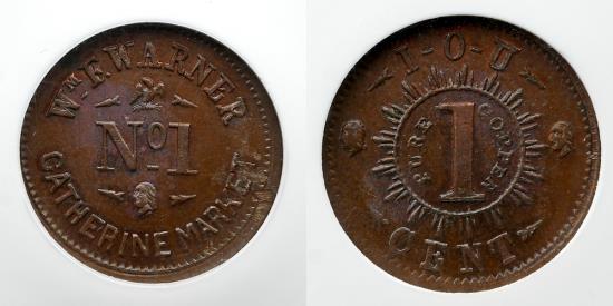 | CIVIL WAR TOKEN: 1861-65, New York, NY, WM F Warner, Rarity 4, NGC MS 64 BN, F-630CB-2A, R4 |