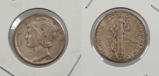 1934-D Mercury 10 Cents (Dime) 'D/D' over-mintmark