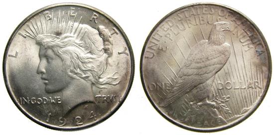 United States, Silver Peace Dollar 1924 GEM BU Brilliant Uncirculated MS-65+ or Better - Worth Grading