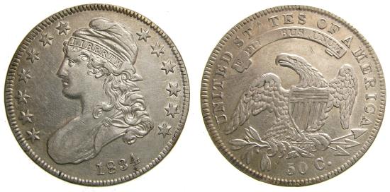 United States, 1834 Silver Half Dollar Capped Bust Large Date Small Letter AU-50