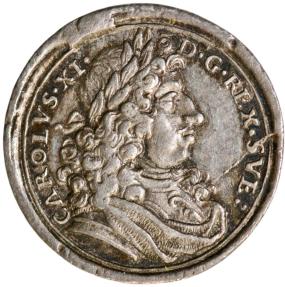Sweden, medal dated 1680 (no year), struck under King Karl XI by engraver A. Karlsten. The medal marked the King’s bravery and thoughtfulness, characteristics which had helped to raise Sweden’s honour and welfare. Hildebrand 77. 2,5 g. Protocol no. 2835