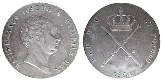 TCWG-7, GERMANY, BAVARIA, AR, THALER, MAXIMILIAN  JOSEF I, 1820, 1806-1825, KM 706.1  AU
