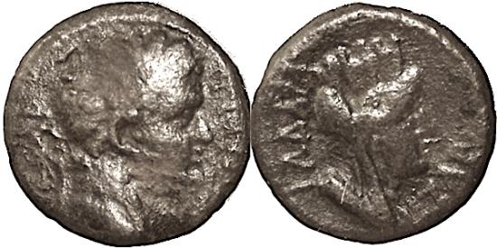 TCGKPB-58, SYRIA, DECAPOLIS, GADARA, CLAUDIUS, AE 3.99 gm 15.5 mm, 41-54 AD. Obv: Bare head of Claudius right. Rev: Bust of TYCHE right. Lindgren-2206, sng and 1295-6. Nice clean coin! aVF/gVF |