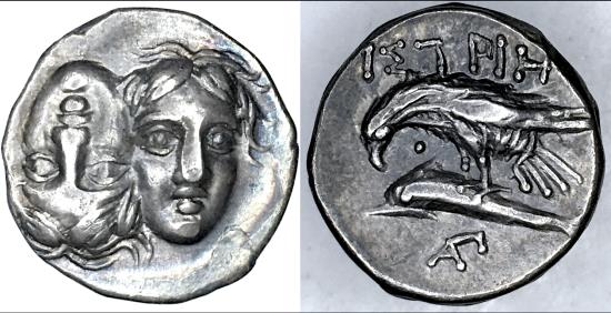 | THRACE, ISTROS, 2 FACES, EAGLE ON DOLPHIN, DRACHM |