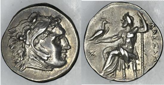 TCGKS-95, Macedonia, Susa, ALEXANDER THE GREAT, Lifetime Issue AR 4.28 gm 18.32 mm DRACHM, 336-323 BC. obv: Head of young Herakles clad in a lion′s skin rev: Zeus enthroned left, holding eagle and scepter, AΛEΞANΔPOY on right side