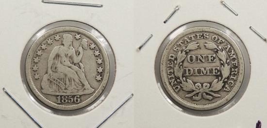 1856 Seated Liberty 10 Cents (Dime) Large date.