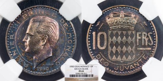 MONACO Prince Ranier III 1950 Essai 10 Francs NGC PF-65