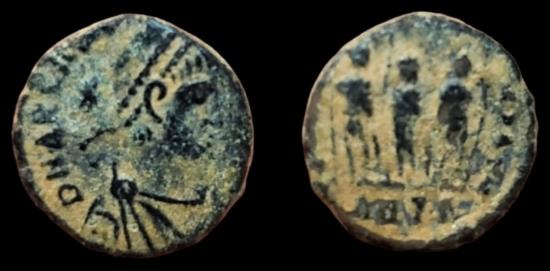 Arcadius AE4 Nummus, Antioch mint. off 3 or 4. Struck 406-8 AD. Very Fine.