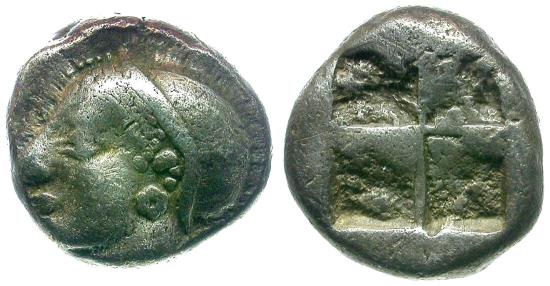Obverse: Head of Athena left, wearing close-fitting helmet and earring