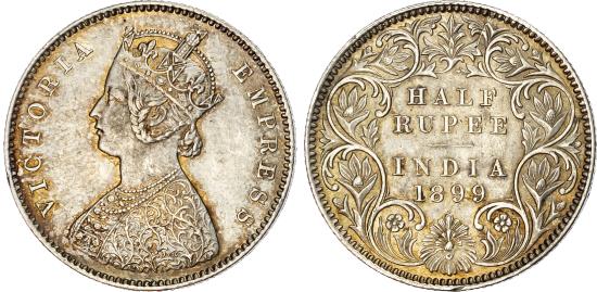INDIA, EIC, VICTORIA (1837-1901), SILVER HALF RUPEE, 1899