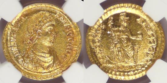 | WESTERN ROMAN EMPIRE, Valentinian II (375-392 AD), Gold Solidus, graded MS by NGC |