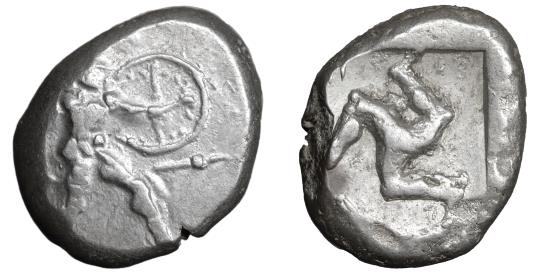 Pamphylia Aspendos AR Stater 465-430 BC Warrior \ Triskeles