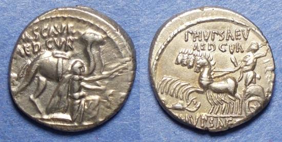 Roman Republic, M Aemilius Scaurus & Pub. Plautius Hypsaeus 58 BC, Silver Denarius
