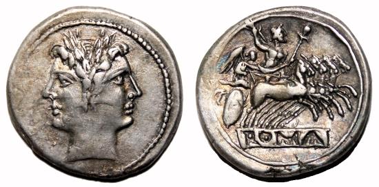 ANONYMOUS AR Didrachm (Quadrigatus). aEF. Janus - Jupiter in Quadriga.