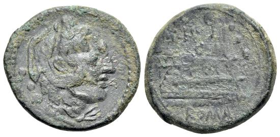 M. Fabrinius , Rome, 132 BC. Æ Quadrans (21mm, 5.54g, 7h). Head of Hercules r.; wearing lion’s skin; club at truncation of neck. R/ Prow of galley r. Cf. Crawford 251/3. Fine