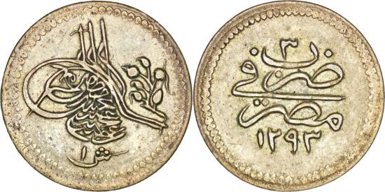 Ottoman Empire. Abdul Hamid II AR 1 Qirsh (1.25g/ 18mm) - Bir kuruşluk. Misr (Cairo) mint, dated AH 1293 and RY 3 = AD 1878. Toughra, flowers to right, denomination below / Denomination and date in four lines. Sultan 3915; Pere 994 var. (RY date); KM 277.