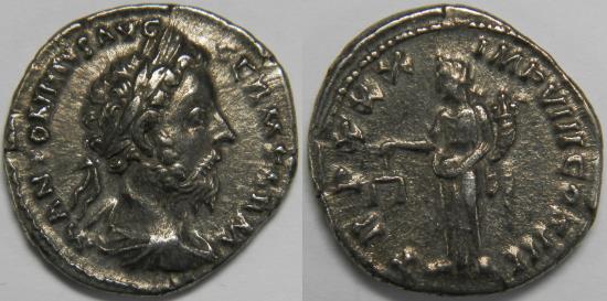 Roman Empire Marcus Aurelius AR Denarius (Rome, AD 175-176) Laureate head right / Aequitas standing left, holding scales and cornucopia. 3.54 grams, 19 mm. About Extremely Fine. Dark tone. RIC 359 var. (reverse legend), RSC 929c. Purchased from Rex Numismatics, Rotterdam. |