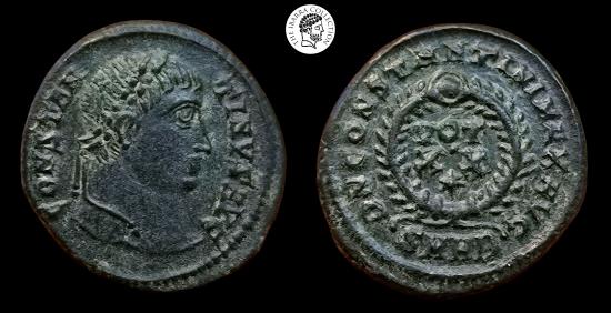 Constantine I 'the Great' BI Nummus. Heraclea mint. 307-337 AD. Struck circa 324 AD. CONSTANTINVS AVG, pearl-diademed head to right / D N CONSTANTINI MAX AVG, VOT X•X(star) in three lines; all within wreath, SMHB in exergue. 19mm, 3.54g. RIC 60.