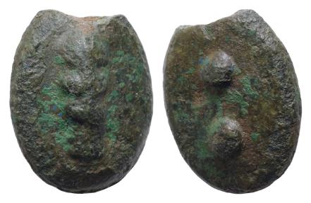 Etruria or Umbria, possibly Volsinii Cast Æ Sextans. 3rd century BC. Club / Two pellets. ICC 199; HN Italy 54; for a tentative identification of this issue's minting authority, cf. M. Crawford 'The oval series of aes grave' in CH 9 (2002), pp. 269-270. 20.33g, 29mm.
