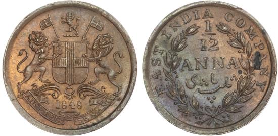India, EIC, Victoria, copper Pie / 1/12 Anna, 1848