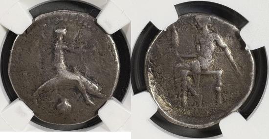 552. 7.76g. NGC Graded Choice Fine, 4/5 strike, 3/5 surface, edge filing. The edge filing is just a small patch. For international shipments, please reach out to me on the "Contact Us" page. |
