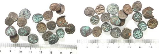 LOT OF 20 AS FOUND: Arabia Felix. Himyarite Kingdom. 100 - 300 A.D. Rare copper Bucranium coins.