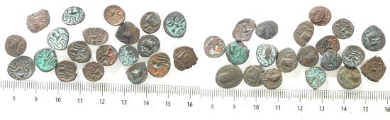 LOT OF 20 AS FOUND: Arabia Felix. Himyarite Kingdom. 100 - 300 A.D. Rare copper Bucranium coins.