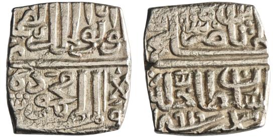 Malwa: Mahmud Shah II (1510-1531), silver square 1/2 tanka (5.28g), AH 919 (1513-1514 CE).