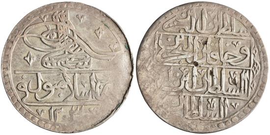 Ottoman: Selim III (1789-1807), silver yuzluk / 100 para (30.98g), Islambul (Istanbul) mint, AH 1203 (1789 CE), RY 10.