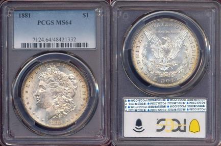 1881 MORGAN DOLLAR PCGS MS64 .... LOVELY TONING